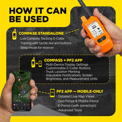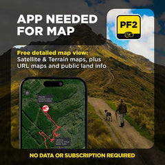 Run the COMPASS on its own for complete tracking and training without your phone. Or pair it with the free PF2 app to unlock satellite maps, offline navigation, GPS fencing, and public land boundaries. No fees. No data plans. Just dependable performance anywhere you hunt.