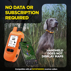 The PATHFINDER2 MINI Compass Set is built for hunters who need dependable GPS handheld control paired with a lighter receiver made for dogs 15 lbs and up. At the center is the COMPASS handheld—a rugged, waterproof GPS connector with a crisp 2" display, a live compass, and fast 2-second updates that work anywhere, with no cell signal or monthly fees required.