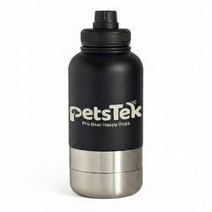 PetsTek Portable Dog Water Bottle - 3 in 1 Insulated Stainless Steel Travel Bowl & Dispenser with Leak Proof Magnetic Lid